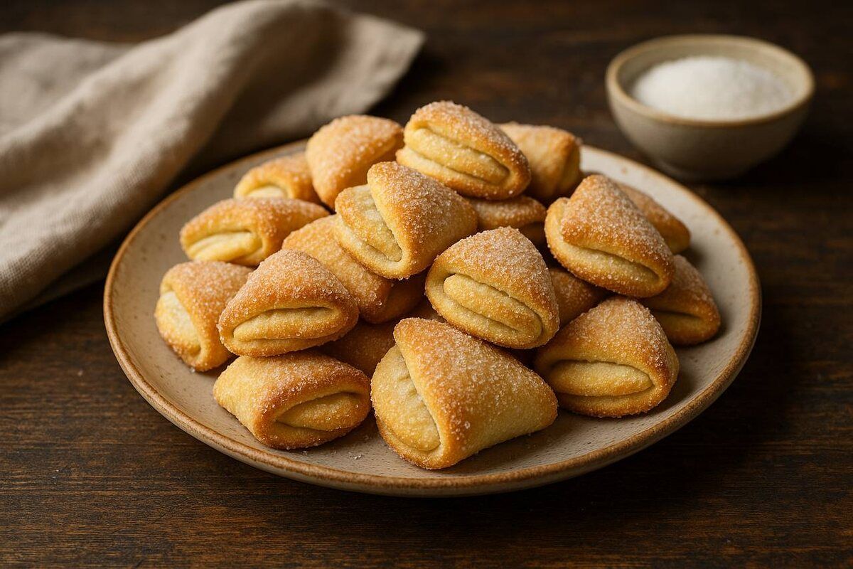 Соединяется всё просто: творог для мягкости, масло для пластичности, сахарный слой для хруста. Это сочетание, которое сразу даёт понять — здесь не про редкую выпечку с долгими приготовлениями. Ни одна деталь не выбивается, корочка ломкая, центр не крошится, лежит дома на блюде, не теряя свежести.