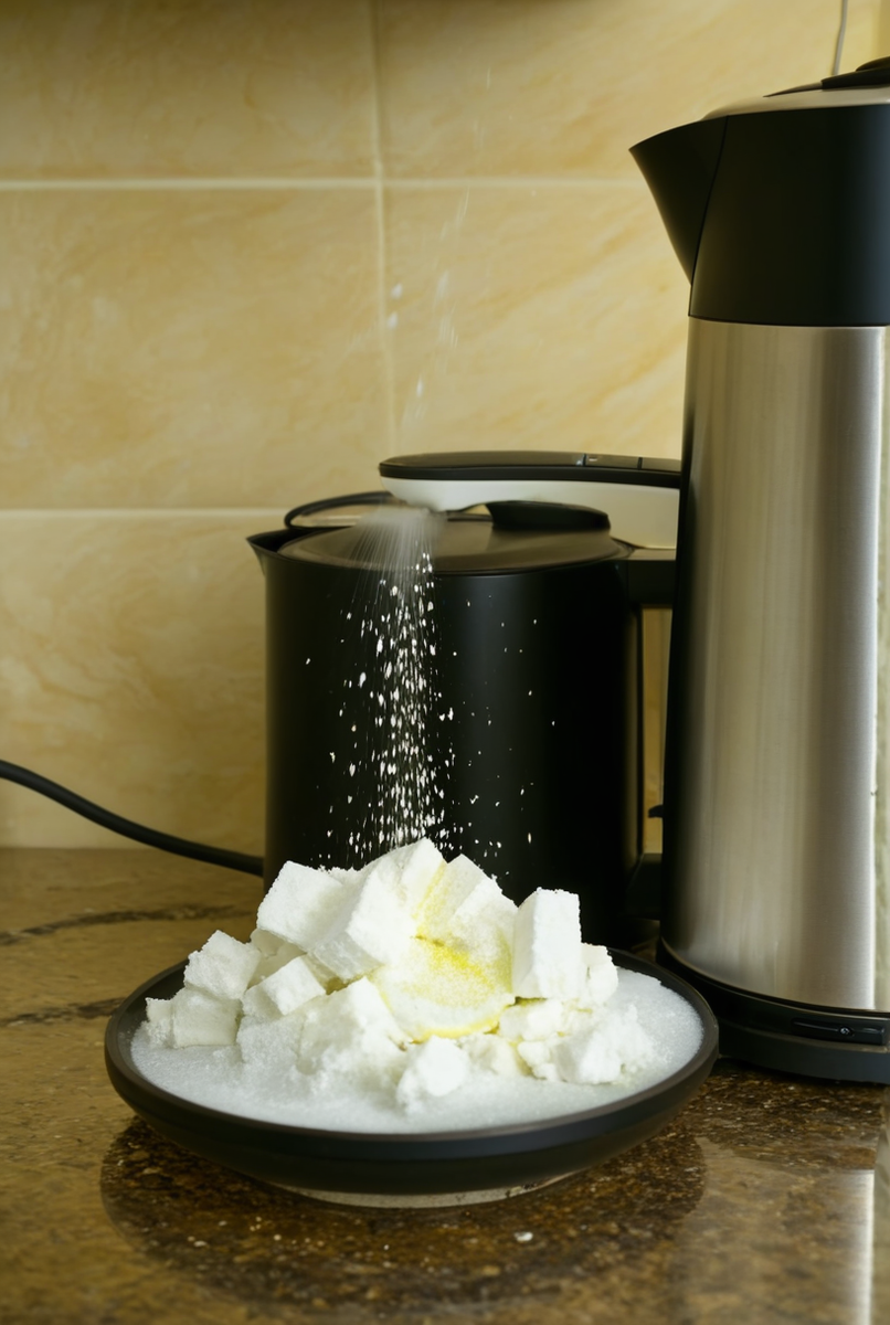 - Домашние средства: За доступную цену можно использовать лимонную кислоту или уксус. Лимонная кислота легко справляется с карбонатом кальция: рекомендуется использовать 20-30 граммов на литр воды. Уксус, хоть и менее щадящий, также эффективен, но его применение требует особой осторожности, чтобы избежать повреждения резинок и пластика в кофемашинах.
