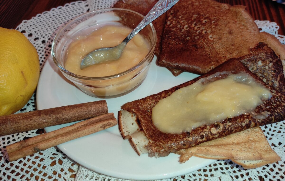 Как только основа готова, снимаем с плиты и добавляем молотую корицу. Затем переливаем готовую массу в баночку и оставляем в холодильнике на несколько часов — до полного застывания. После этого можно наслаждаться блинчиками с лимонным кремом!