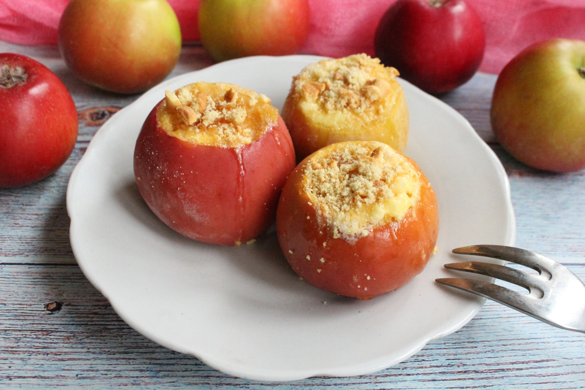 Этот десерт обязательно оценят поклонники яблок и творога. Вместо традиционной начинки из творога можно использовать и творожный сыр — оба варианта готовы удивить своим вкусом. По желанию в начинку добавляют ароматные нотки: ванильный сахар или экстракт, корицу или цедру цитрусовых. Фаршированные яблоки получаются сочными и мягкими, а их необычный вкус не оставит равнодушным никого. Рекомендуется попробовать приготовить это лакомство!