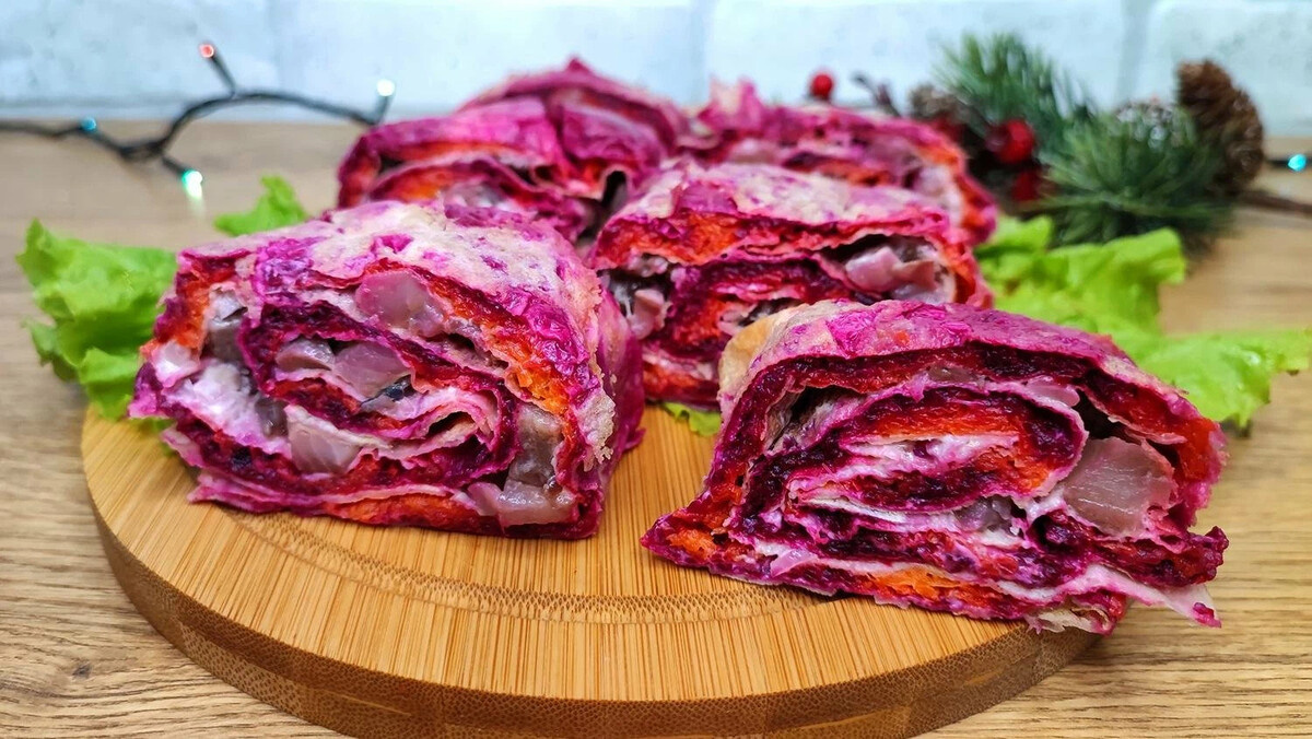 Праздничные застолья требуют не только вкусных, но и визуально привлекательных блюд. Мраморный рулет из лаваша с добавлением свёклы, моркови и слабосолёной сельди представляет собой идеальную находку для украшения любого стола.