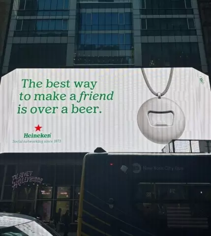 В мире цифровых технологий, где виртуальные лайки заменяют живые эмоции, Heineken с гордостью заявляет о себе как о социальной сети, существующей с 1873 года. На ярком билборде в Нью-Йорке размещена фраза: "Лучший способ завести друга — за пивом. Социальная сеть с 1873 года". Это не просто остроумное заявление. Это вызов современным цифровым привычкам.