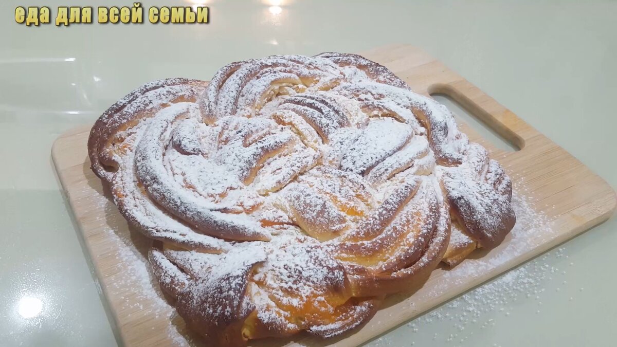 Выпекать пирог нужно 20-25 минут до золотистой корочки. Готовый пирог стоит присыпать сахарной пудрой и дать ему полностью остыть перед нарезкой. Приятного аппетита!