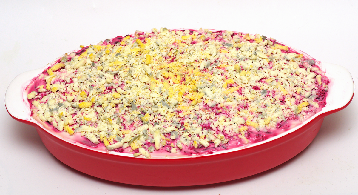 - Винегрет — цветной и полезный салат, который сочетает свеклу, картошку и квашеную капусту, заполняя стол витаминами и радостью.