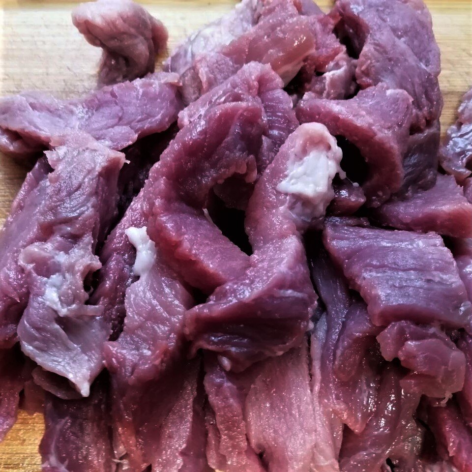 Далее болгарский перец нарезается соломкой, острый перец и чеснок шинкуются, а томаты — кубиками (по желанию, их можно очистить от кожуры). Мясо обжаривают, затем тушат под крышкой около 40 минут, добавляя лук на последнем этапе и доводя до готовности, засыпая перец и помидоры. Финишный аккорд — базилик, который добавляется перед подачей на стол.