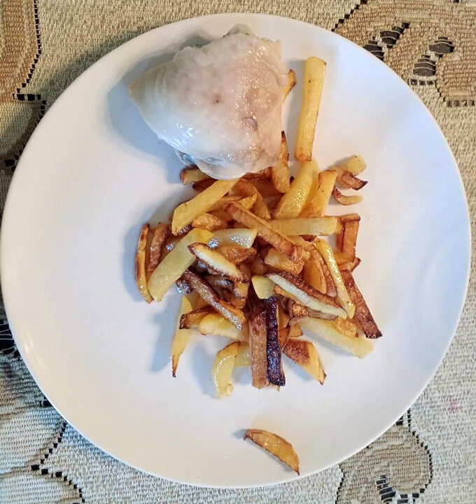 Пока курица готовится, следует обратить внимание на репу: очистить ее и нарезать соломкой, чтобы кусочки напоминали картофель фри.
