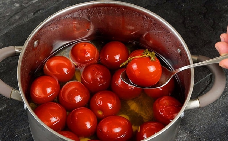 Первым делом тщательно промойте помидоры и поместите их в глубокую кастрюлю. Добавьте крупно нарезанный чеснок, который придаст им изюминку, а также свежую зелень — петрушку и укроп для ароматной нотки. Затем в отдельной кастрюле смешайте воду, соль, сахар, перец и уксус, доведите до кипения для полного растворения ингредиентов.