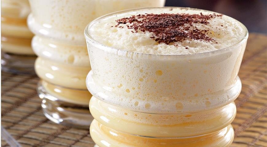2. Взбейте белки до устойчивой пены и аккуратно соедините их с желтковой смесью. Разлейте получившуюся массу по бокалам и украсьте шоколадной стружкой. Такой апельсиновый гоголь-моголь станет отличным началом дня!