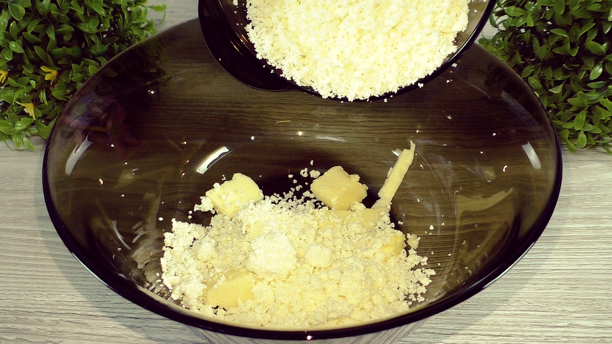 Для начала сливочное масло необходимо достать из холодильника и дать ему немного оттаять. Если времени совсем нет, можно размягчить его в микроволновке. После этого мы добавляем творог к маслу и тщательно перемешиваем блендером до получения однородной массы.