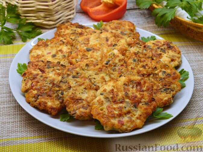 - Печёночные оладьи с картофелем: Эти румяные оладьи можно приготовить быстро и легко, сочетая в одном блюде как мясной компонент, так и овощи. Вам понадобятся куриная печень, картофель, лук, мука и немного специй.