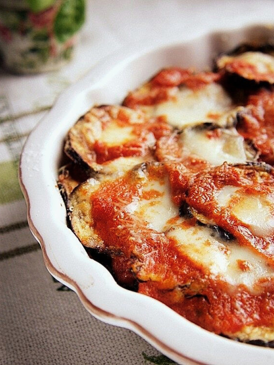 Когда баклажаны будут готовы, необходимо сложить их в форму для запекания слоями, чередуя с кружочками моцареллы. Полить томатным соусом и добавить еще слой сыра. Запекать при 180°C еще 20-30 минут, пока сыр не расплавится и не образуется золотистая корочка.