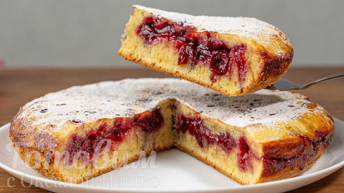 Готовится легко и быстро, без лишних хлопот. Вместо вишни можно смело использовать любые сезонные ягоды или фрукты, что делает рецепт универсальным. Этот пирог станет вашим верным спутником в летние дни, радуя разнообразием вкусов и простотой приготовления.