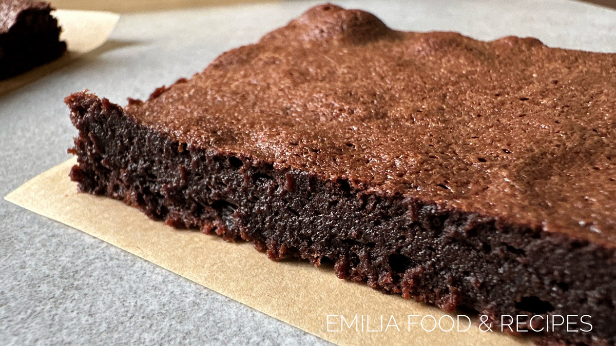 Форма для выпекания (размер 22х35 см) застилается пергаментом. На дне можно немного сбрызнуть водой или смазать маслом. Готовая шоколадная масса равномерно распределяется по форме и выпекается в разогретой до 150°C духовке в течение 25-30 минут.