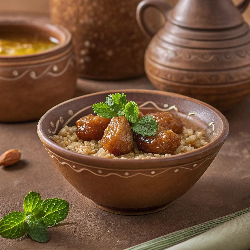 Царский ячменный пудинг с финиками