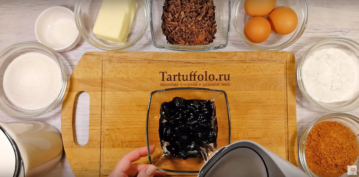 Когда чернослив станет мягким, его помещают в блендер, добавляют немного воды и, по желанию, столовую ложку коньяка. Измельчают до получения однородной массы.