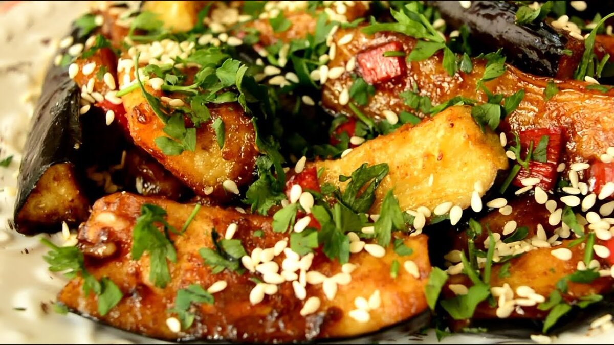Готовое блюдо можно подавать на стол, посыпав кунжутом и зеленью. В качестве гарнира отлично подойдет отварной картофель или рис, но даже без них баклажаны останутся сытными и низкокалорийными, что делает это блюдо идеальным для ужина.