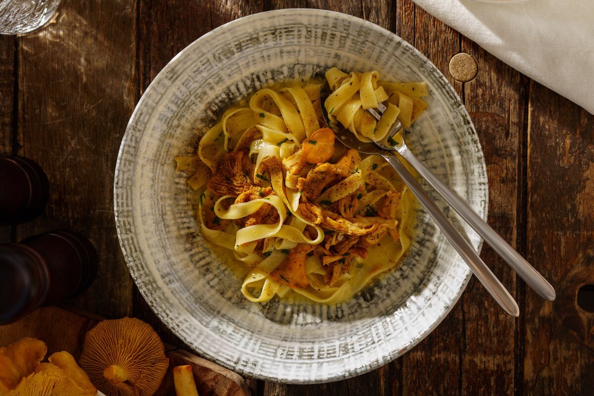 Феттучини с лисичками
