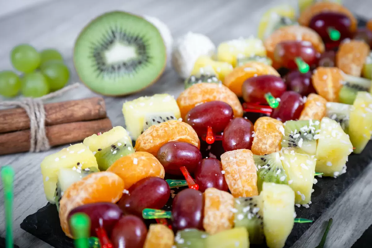 - Разнообразные фрукты: выбирайте ваши любимые, такие как клубника, виноград, киви, манго и ананас.