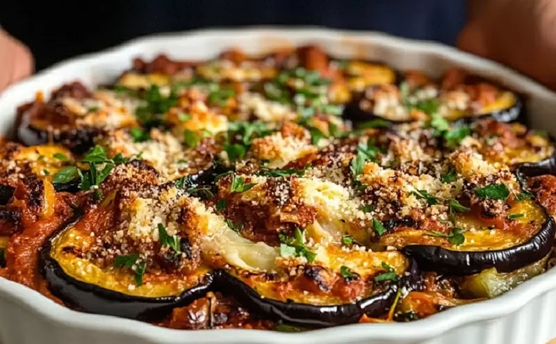 Первым делом подготавливаются баклажаны: их нарезают кружками, солят и сбрызгивают оливковым маслом. Запекаются они в разогретой до 200°C духовке около 25–30 минут, пока не становятся мягкими и не подрумяниваются. Этот способ позволяет сохранить их структуру и раскрыть аромат.