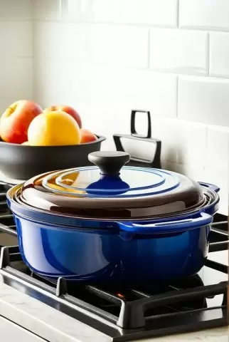 Чугун и эмаль остаются в фаворе для томления и медленного остывания. Чугун медленно нагревается и хранит тепло дольше, благодаря чему мясо и овощи остаются сочными, а блюдо продолжает «томиться» после выключения огня. Эмалированная посуда повторяет эти свойства, но добавляет простоту ухода и защиту от ржавчины, сохраняя чистый вкус и внешний вид блюд.