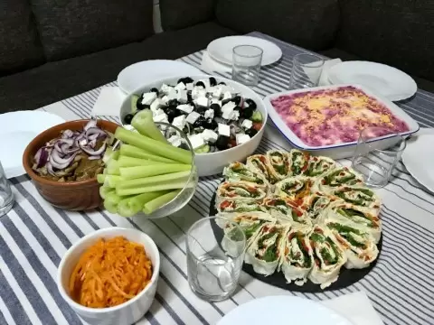Чтобы создать контраст со сытными блюдами, не стоит забывать о свежих салатах и овощах. Например, стебли сельдерея прекрасно сочетаются с мясными блюдами и могут подойти для тех, кто следит за своим здоровьем. А вот греческий салат, приготовленный с добавлением свежих ингредиентов, станет отличным украшением стола.
