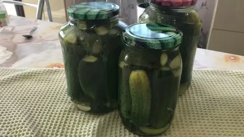 Напоминаем, что перед тем как убрать банки на хранение, необходимо проверить их на герметичность, перевернув. Эти хрустящие огурцы смогут радовать вас всю зиму, хранясь в шкафу при комнатной температуре.