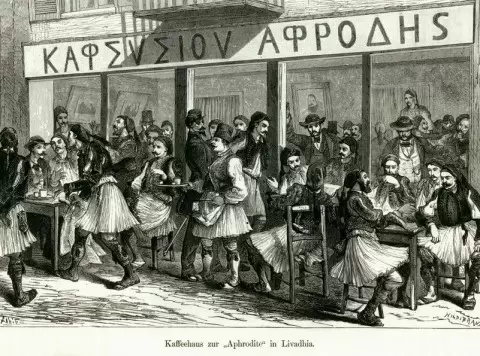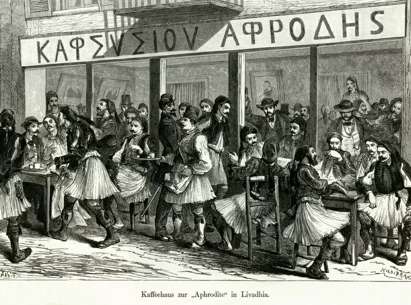 Кофейная культура Греции берёт свои корни из османского наследия, став уникальным символом национальной идентичности. После османского завоевания в 1453 году греческие кофейни заполнили пространство, став центрами дискуссий и революционных планов. Во время Греческой революции 1821 года встречи в кофе в Афинах обеспечивали циркуляцию идей и стратегии борьбы за свободу.