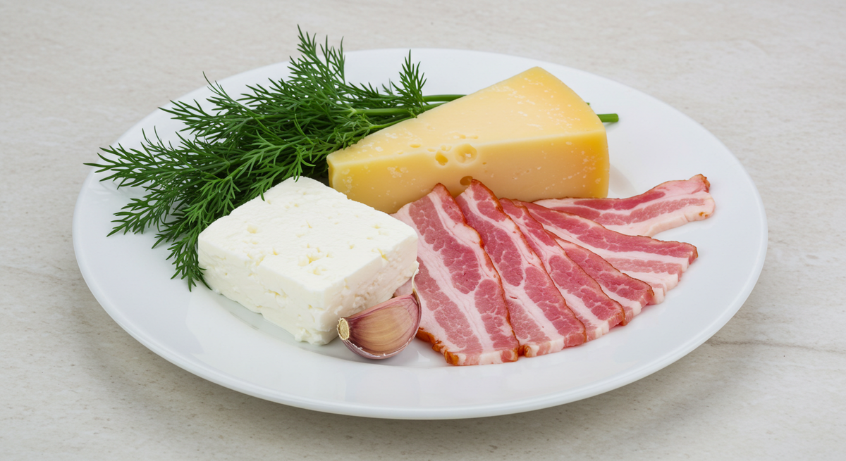 - Брынза (150 г) — солоноватая и рассыпчатая, она привнесёт характер в блюдо. Если она слишком солёная, замочите её в молоке на 15 минут.