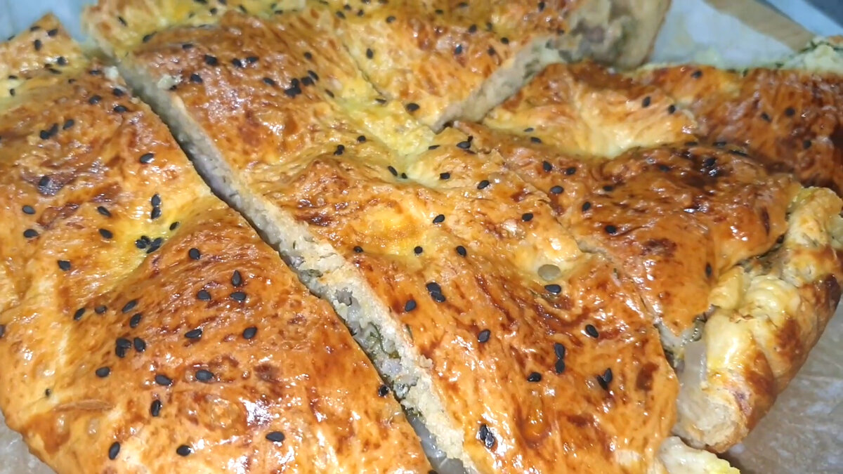 По желанию, перед подачей пирог можно посыпать кунжутом или семенами черного тмина. Нежный и ароматный, этот пирог с сочной начинкой станет незаменимым угощением как для праздников, так и для повседневных трапез. Приятного аппетита!